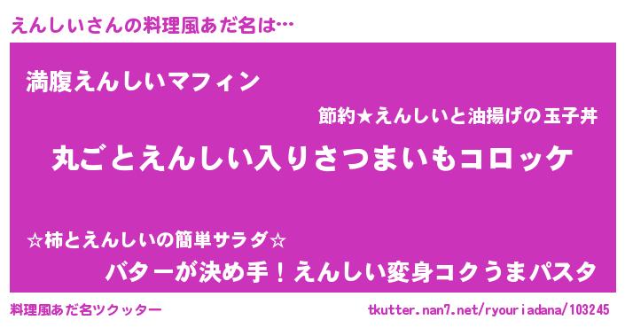| 意味不明あだ名 | 『住所不定無職えんしい(98歳)』 |