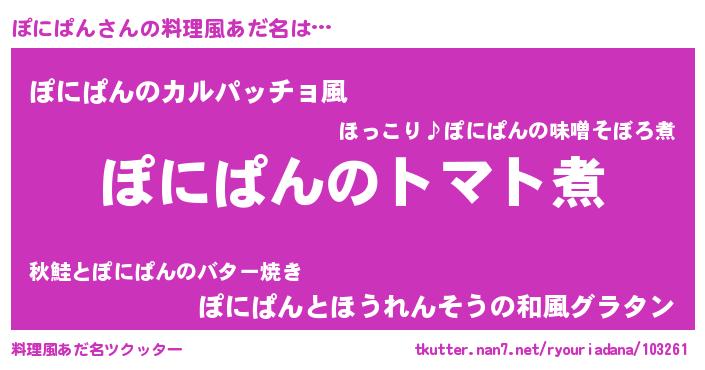 | 女子向けラノベタイトル風あだ名 | 『ぽにぱん夫妻のなれそめ』 |