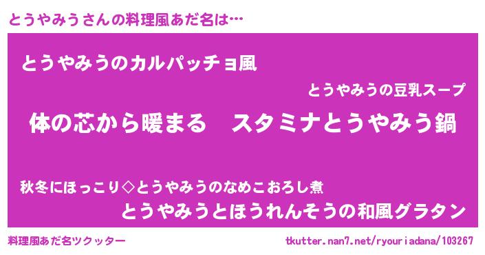 | ファンタジー風あだ名 | 『エターナルトウヤミウー』『トウフェル』 |