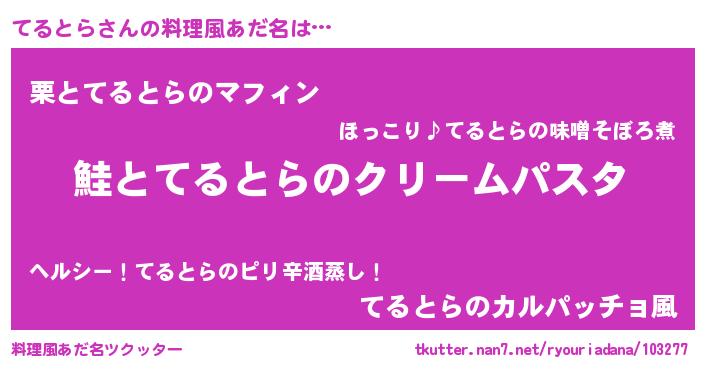 | 女子向けラノベタイトル風あだ名 | 『死神てるとらの再婚』 |