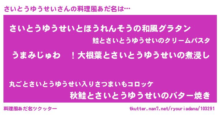| 意味不明あだ名 | 『さいとうゆうせいフォーエバー』 |