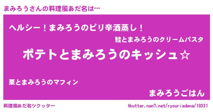 | 女子向けラノベタイトル風あだ名 | 『まみろうの卵を拾いまして』 |