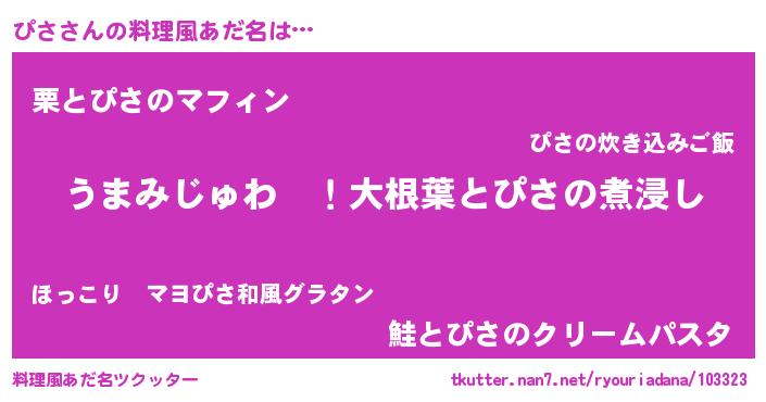 | 2回繰り返すあだ名 | 『ぴぴささ』『ぶかぶか』『とぽとぽ』 |
