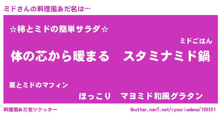 | 意味不明あだ名 | 『ミドフォーエバー』『なめこ科ミド属』 |
