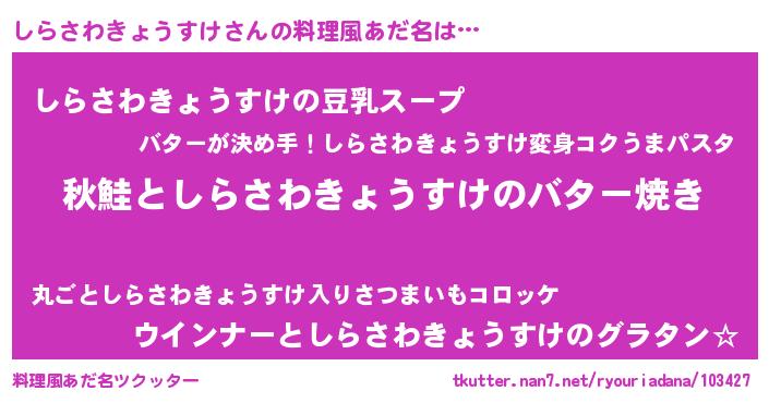 | 意味不明あだ名 | 『永久保存しらさわきょうすけ』 |