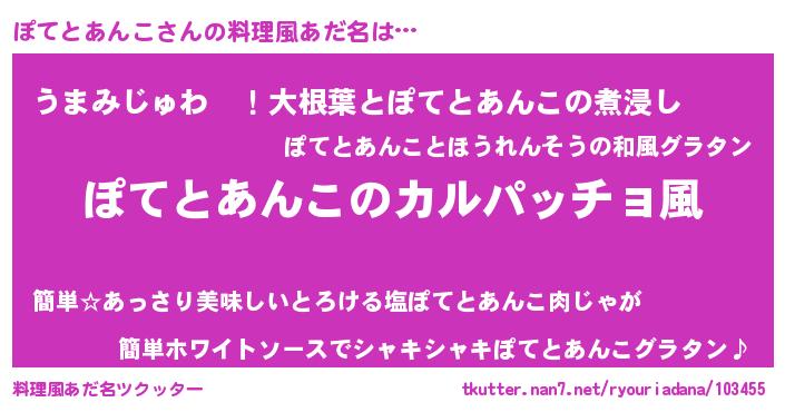 | 意味不明あだ名 | 『住所不定無職ぽてとあんこ(9歳)』 |