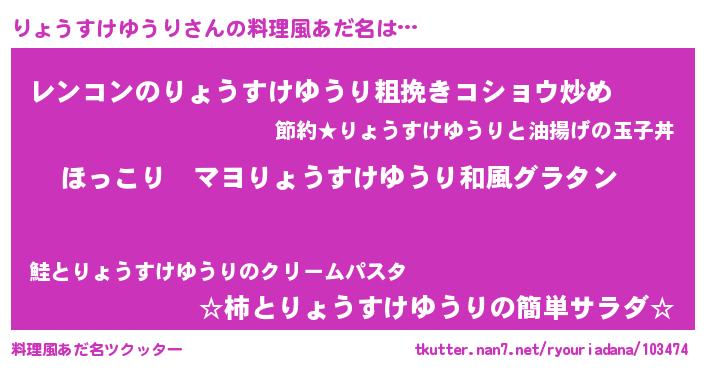 | 意味不明あだ名 | 『住所不定無職りょうすけゆうり(59歳)』 |