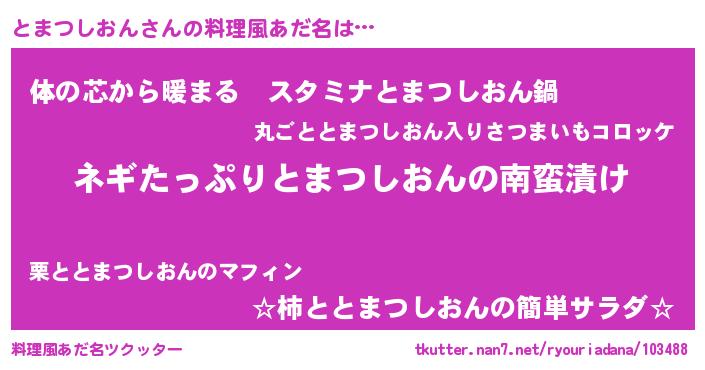 | 胡散臭い通販商品みたいなあだ名 | 『億万長者になれる霊験あらたかなお札…その名も「とまつしおん」』 |