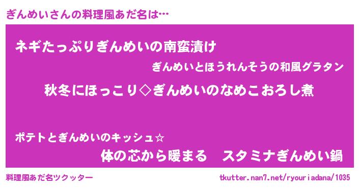 | ポケモン風あだ名 | 『ギンゴンZ』『ギンチュウ』 |
