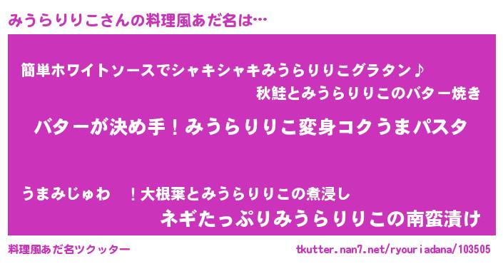 | ヒーロー風カッコイイあだ名 | 『愛の使者みうらりりこ』『天弓騎士ミウ』 |