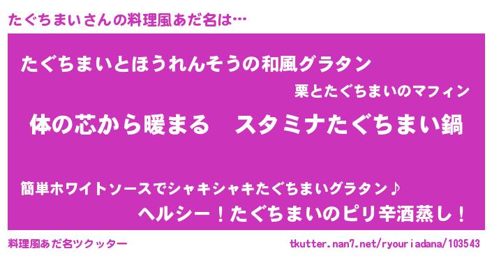 | ヘコむあだ名 | 『牛乳』『たぐっぺ』『たぐにー』 |