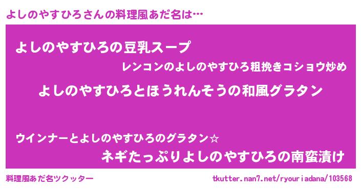 | 意味不明あだ名 | 『もやし科よしのやすひろ属』 |