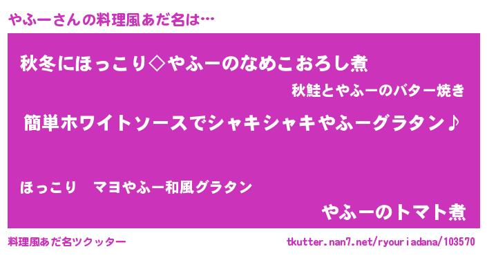 | 男性向けラノベタイトル風あだ名 | 『やふーの嫁は女の子じゃないと思った?』 |