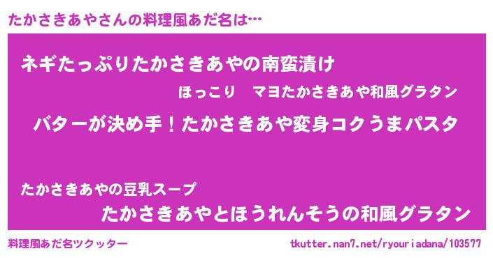 | 肩書あだ名 | 『たかさきあや教授』『たかさきあや大将』 |