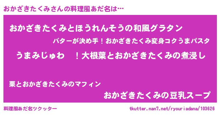 | 欧米人風あだ名 | 『おかざきたくみクリステル』 |