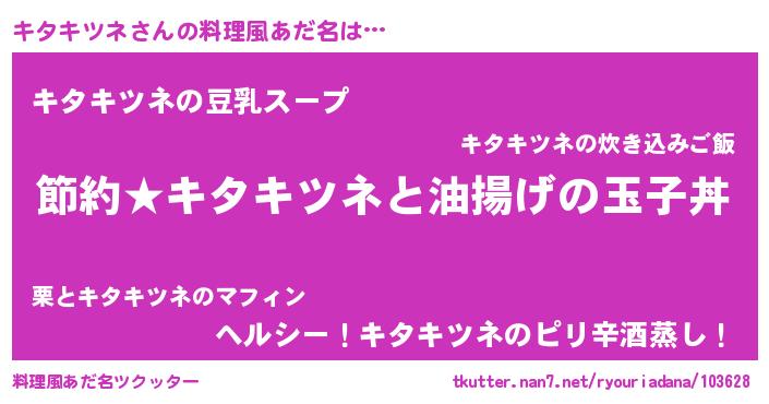 | 男性向けラノベタイトル風あだ名 | 『キタキツネアートオンライン』 |