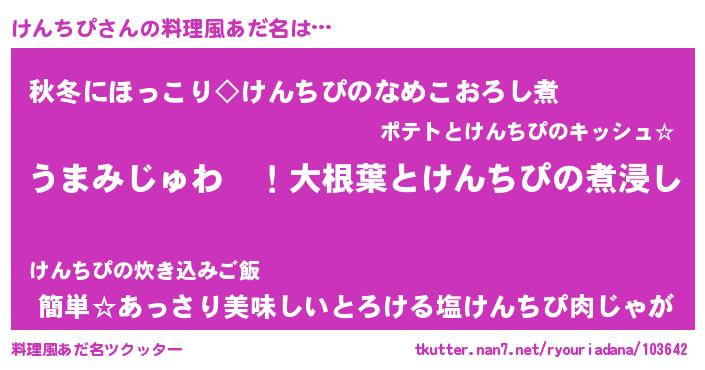 | 意味不明あだ名 | 『けんちぴフォーエバー』 |