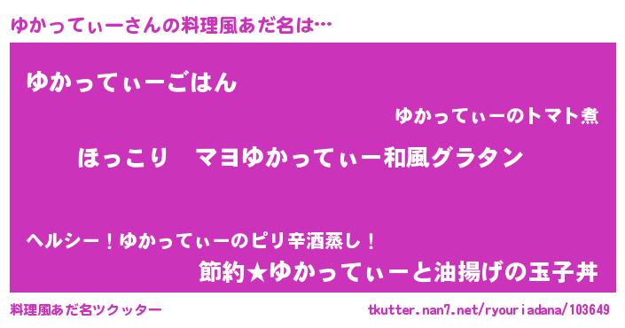 | 意味不明あだ名 | 『住所不定無職ゆかってぃー(86歳)』 |