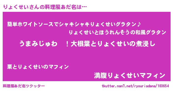 | ファンタジー風あだ名 | 『エターナルリョクセイー』『リョフェル』 |