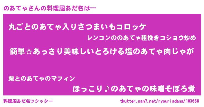 | 意味不明あだ名 | 『永久保存のあてゃ』『ペロリンのあてゃ』 |
