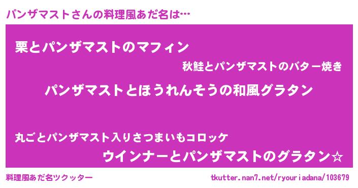 | 男性向けラノベタイトル風あだ名 | 『パンザマスト~年齢イコール彼女いない歴の魔法使い~』 |