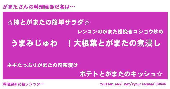 | 意味不明あだ名 | 『がまたフォーエバー』『自称がまた』 |