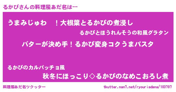 | ヘコむあだ名 | 『豆乳』『るかぴ(小並感)』『るかを』 |