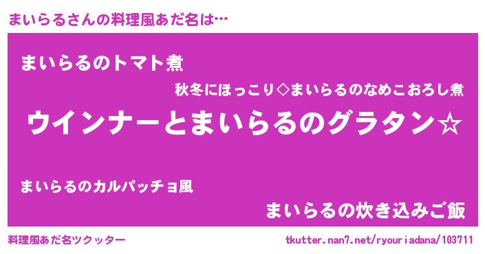 | 意味不明あだ名 | 『まいらるフォーエバー』『自称まいらる』 |
