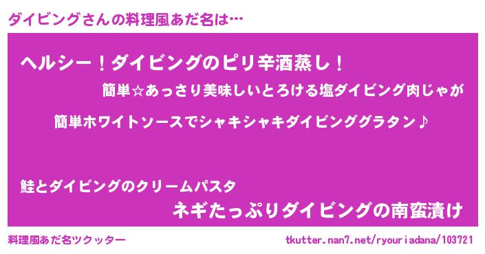 | 男性向けラノベタイトル風あだ名 | 『ダイビングの嫁は女の子じゃないと思った?』 |