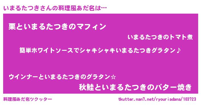 | ヘコむあだ名 | 『いまぷりん』『いまるたつき(苦笑)』 |