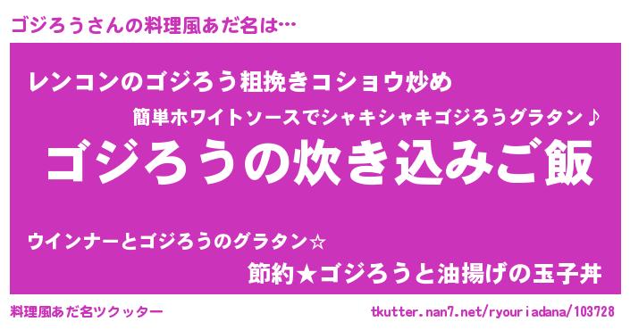 | 意味不明あだ名 | 『自称ゴジろう』『ペロリンゴジろう』 |
