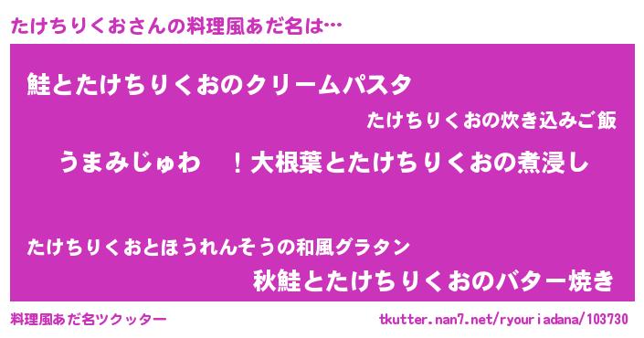 | ヘコむあだ名 | 『酢こんぶ』『たけちりくお(笑)』 |