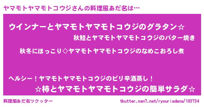 | 意味不明あだ名 | 『ヤマモトヤマモトコウジフォーエバー』 |