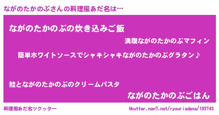 | 男性向けラノベタイトル風あだ名 | 『ながのたかのぶの嫁は女の子じゃないと思った?』 |