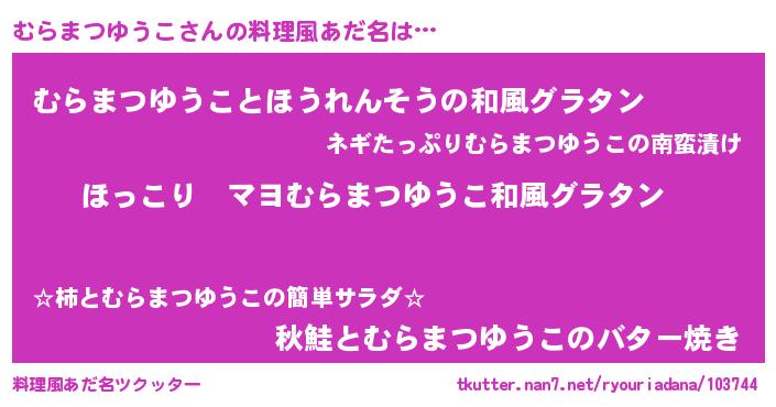 | 意味不明あだ名 | 『住所不定無職むらまつゆうこ(5歳)』 |