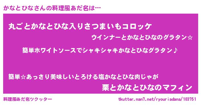 | 男性向けラノベタイトル風あだ名 | 『かなとひなの嫁は女の子じゃないと思った?』 |
