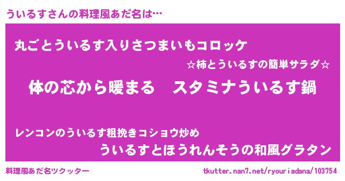 | ヒーロー風カッコイイあだ名 | 『ウルトラういるすマン』『仮面ウイダー』 |