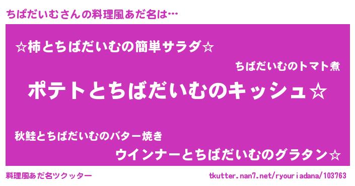 | 男性向けラノベタイトル風あだ名 | 『ちばだいむの嫁は女の子じゃないと思った?』 |