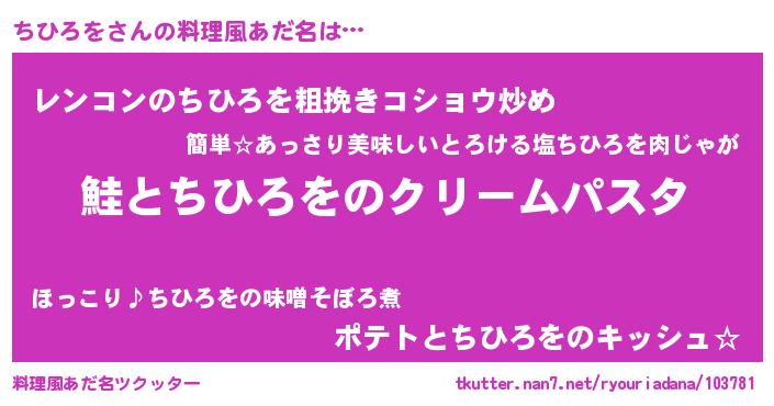 | ヘコむあだ名 | 『ちひ太郎』『ちひろを(遠い目)』 |