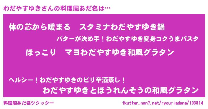 | ヘコむあだ名 | 『酢こんぶ』『わだやすゆき(苦笑)』 |