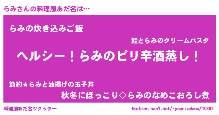 | 胡散臭い通販商品みたいなあだ名 | 『芸能人もオススメするアガリクス…その名も「らみ」』 |