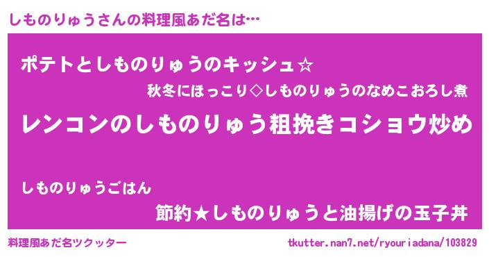 | 女子向けラノベタイトル風あだ名 | 『しものりゅうなんてお断りですっ。』 |