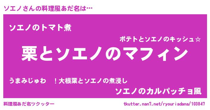 | 意味不明あだ名 | 『眠気覚ましガムソエノ味』『自称ソエノ』 |