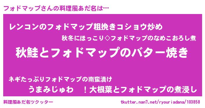 | 胡散臭い通販商品みたいなあだ名 | 『来世でも幸せになれる水素水…その名も「フォドマップ」』 |