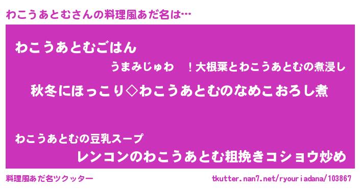 | 男性向けラノベタイトル風あだ名 | 『わこうあとむに滅ぼされるだけの簡単なお仕事です』 |