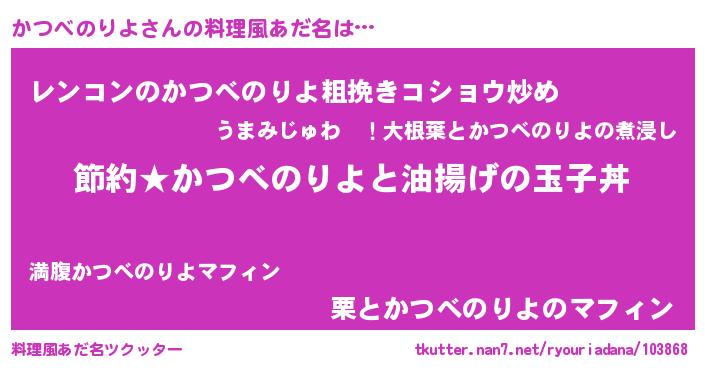 | 女子向けラノベタイトル風あだ名 | 『かつべのりよ姫と円卓の騎士』 |