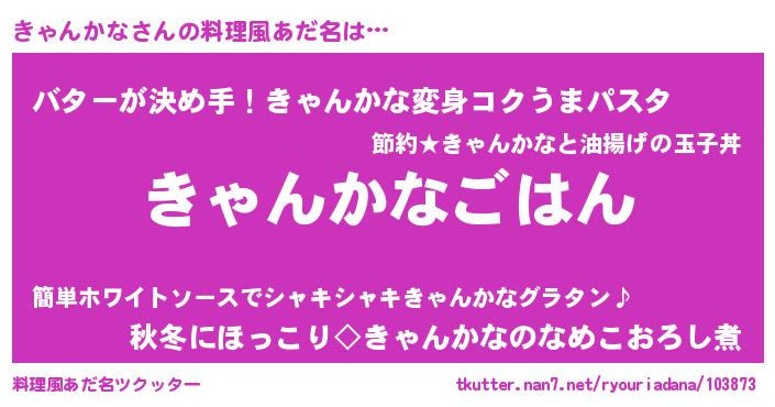 | 男性向けラノベタイトル風あだ名 | 『転生したらきゃんかなだった件』 |