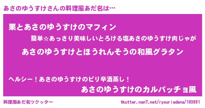 | 女子向けラノベタイトル風あだ名 | 『あさのゆうすけの玉の輿計画!』 |