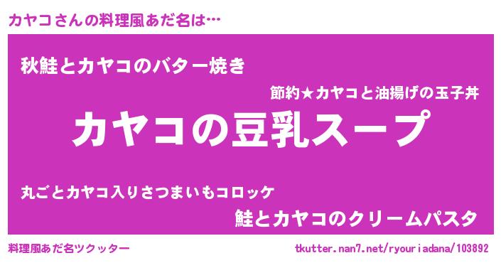 | ヘコむあだ名 | 『カヤを』『カヤコ(苦笑)』 |