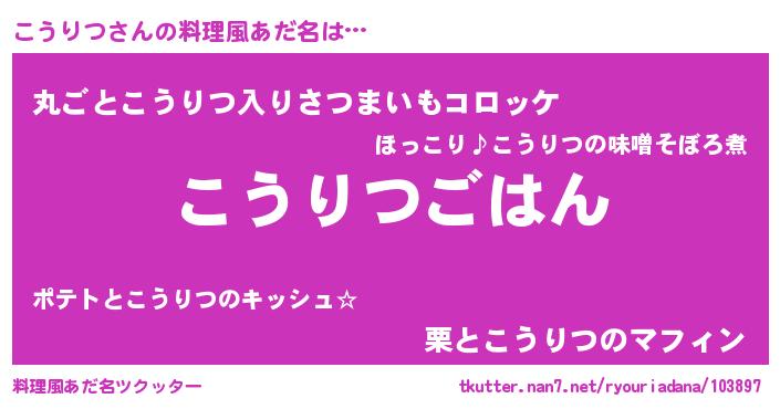 | 男性向けラノベタイトル風あだ名 | 『コウリツスレイヤー』『こうりつの憂鬱』 |